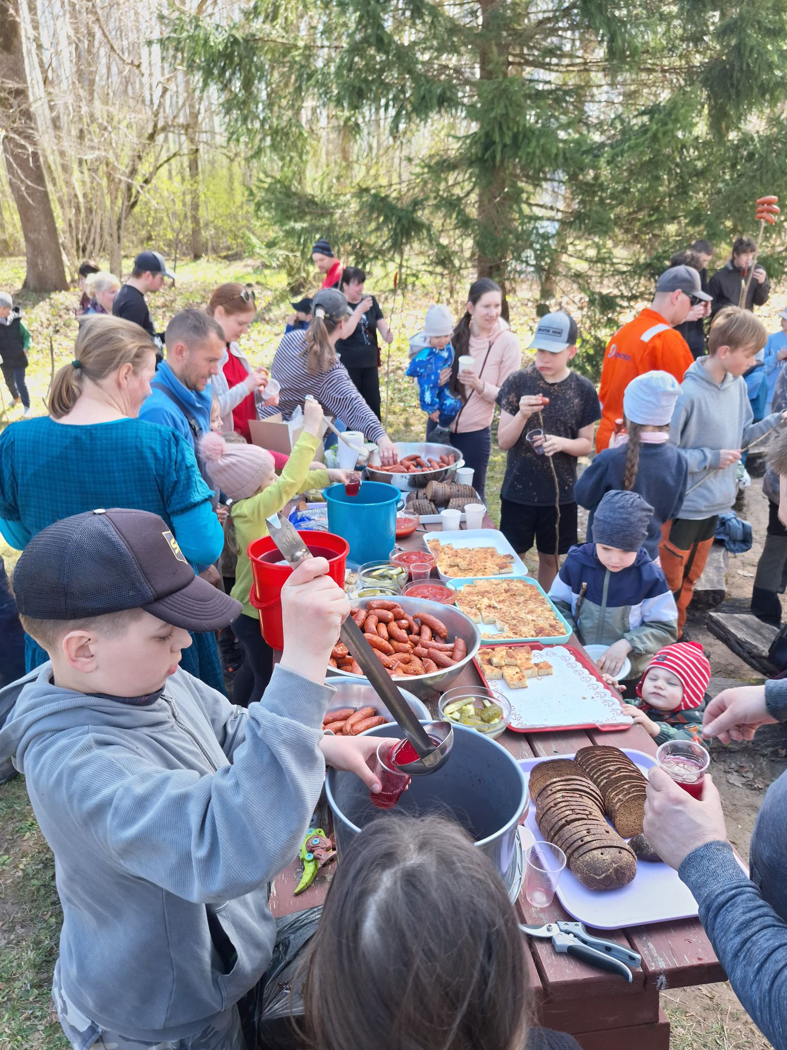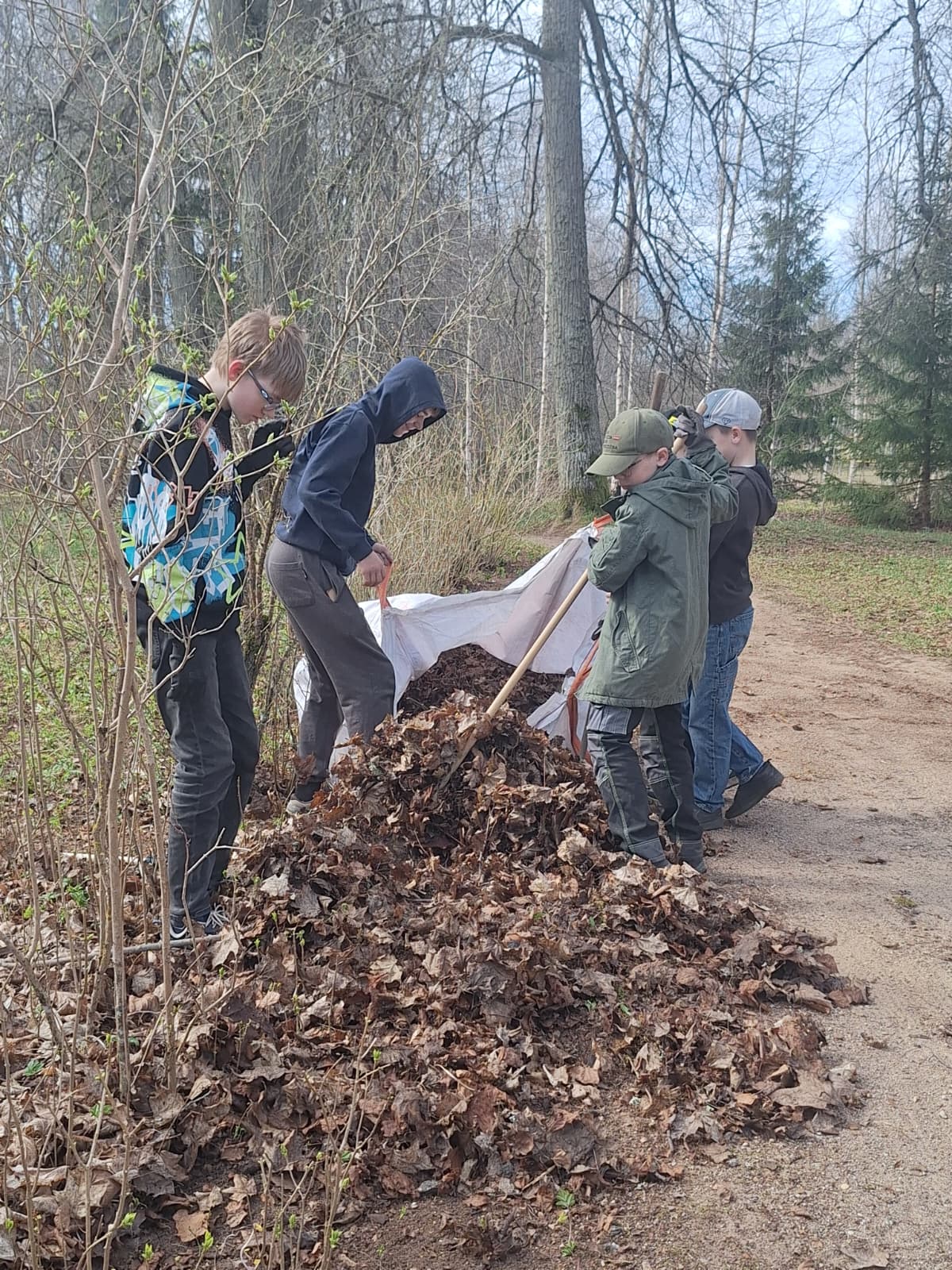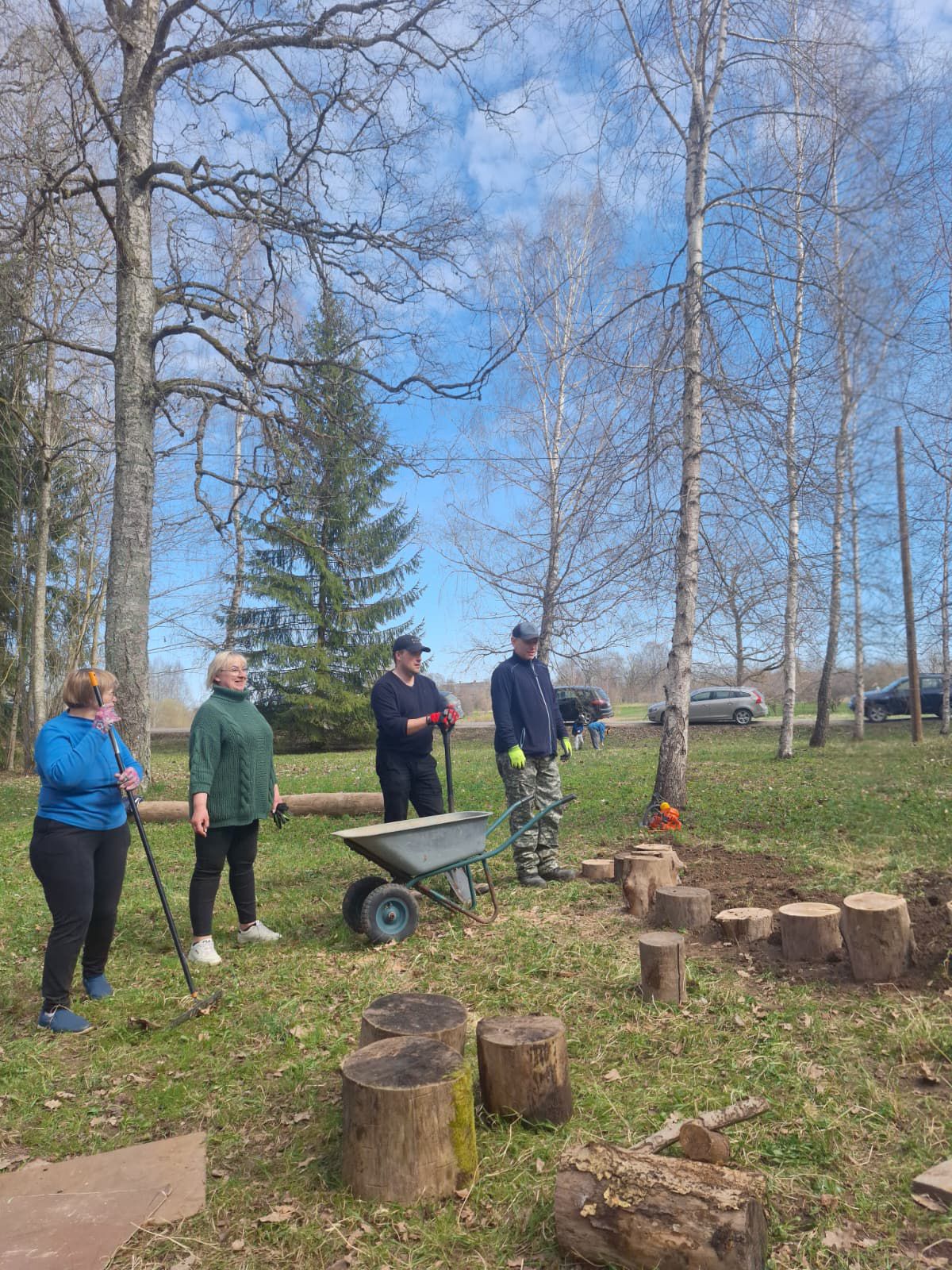 18.aprīļa rītā, skolas teritorijā, darbīgi rosijās vecāki, skolotāji, skolēni, darbinieki un kupls skaits absolventi.